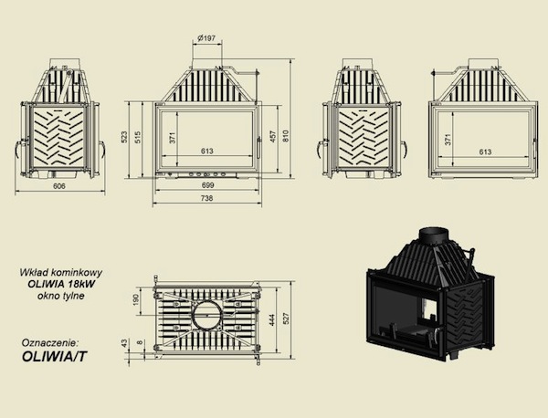 wkład kominkowy OLIWIA 18 tunel - Kratki
